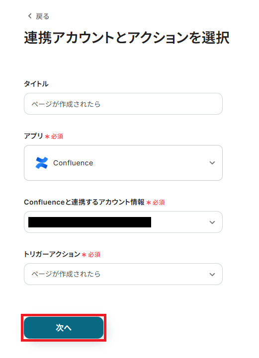 Confluenceのトリガーアクションを「ページが作成または更新されたら」に変更し、その後の設定を行ってください。