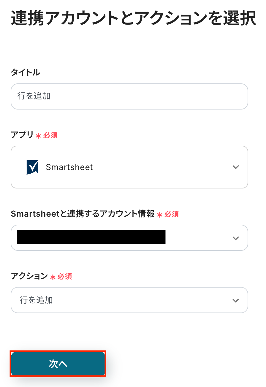 ステップ4:Smartsheetのアクション設定