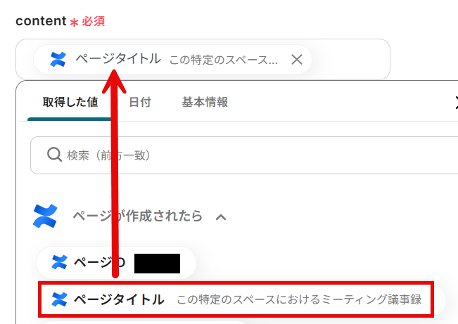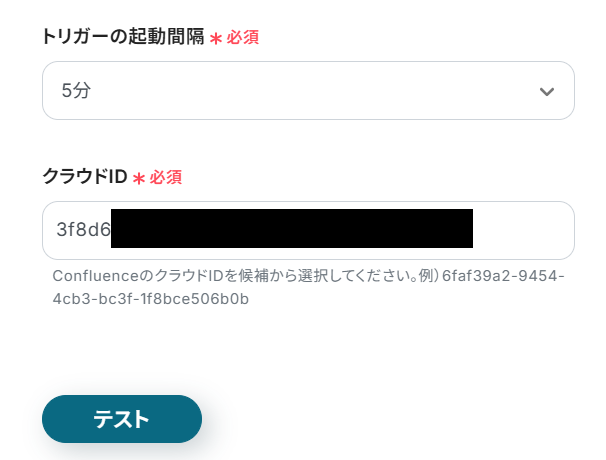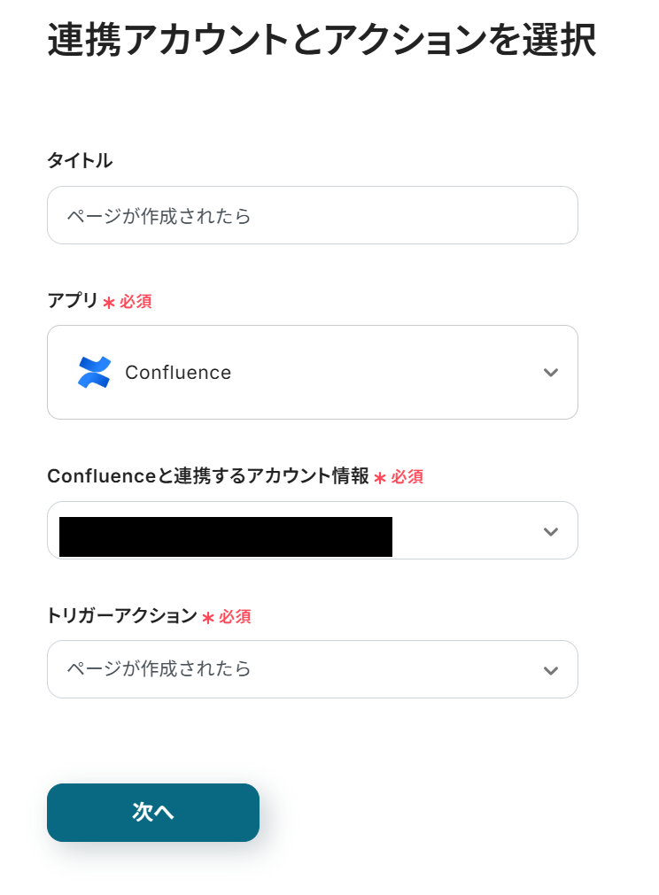 - トリガーアクション:Confluenceでページが作成されたら起動します。