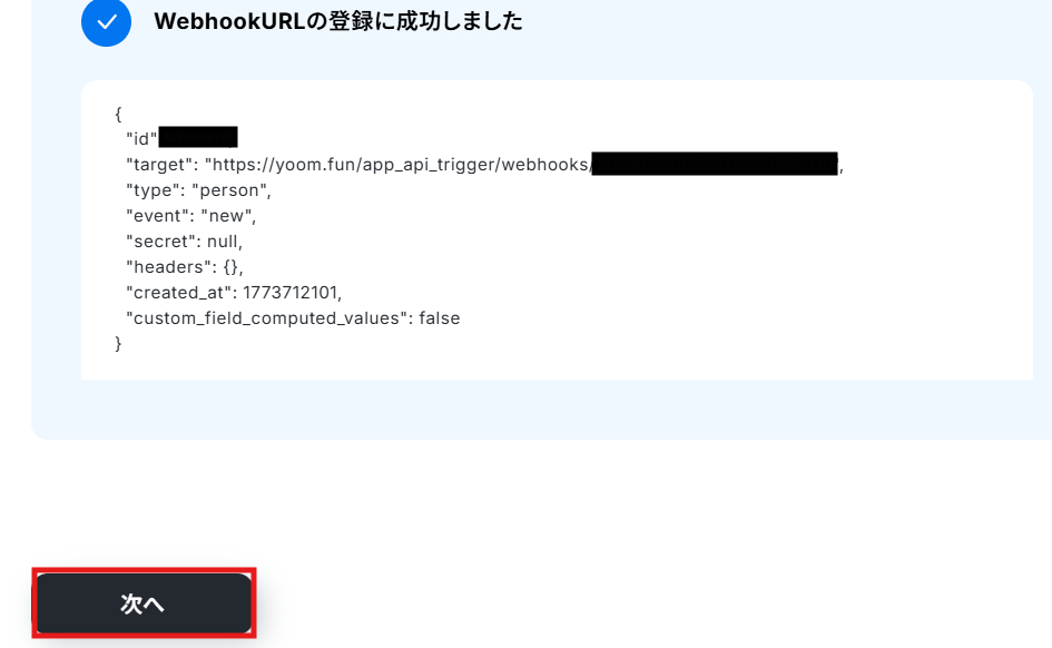 登録に成功したら「次へ」ボタンをクリックしましょう。