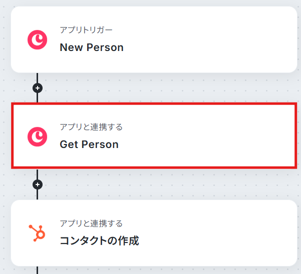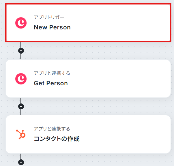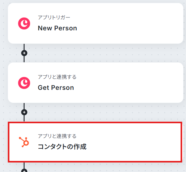 最後に、Copperに作成したPersonの情報をもとに、自動でHubSpotのコンタクトを作成する設定をおこないます。
