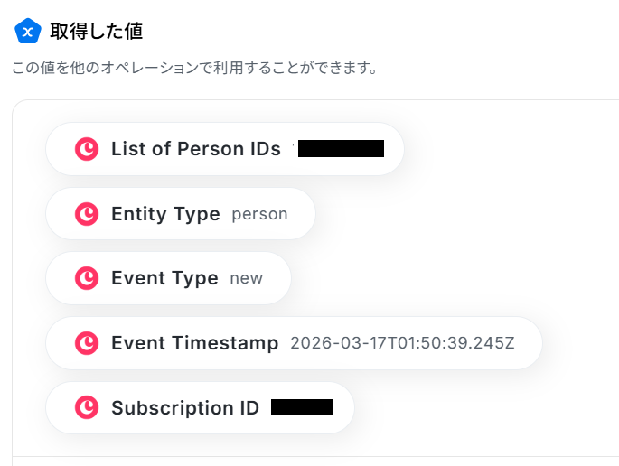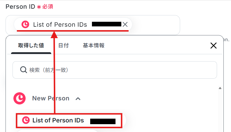 Person IDは、ステップ3で取得したList of Person IDsが自動で反映できるように設定されているので確認し、このまま進みます。