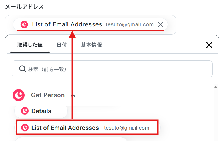 このように設定することで、CopperのPersonに登録したメールアドレスを自動で引用できます。