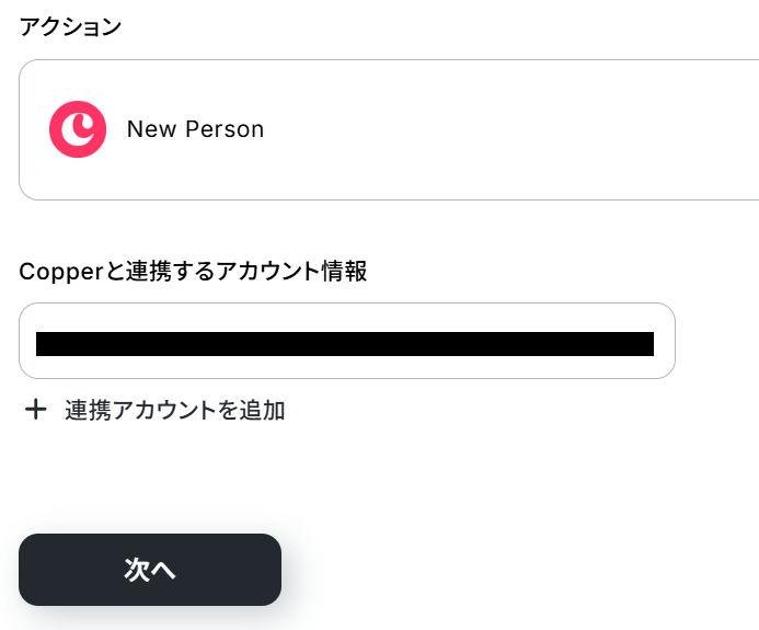 Copperと連携するアカウント情報を確認し、次のページに進んでください。