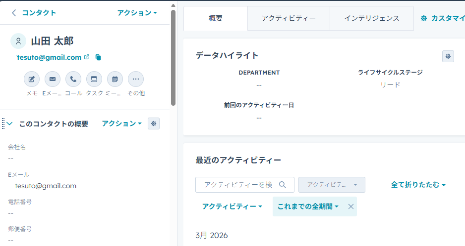 HubSpotに自動でコンタクトが作成されているので、忘れずに確認しましょう!