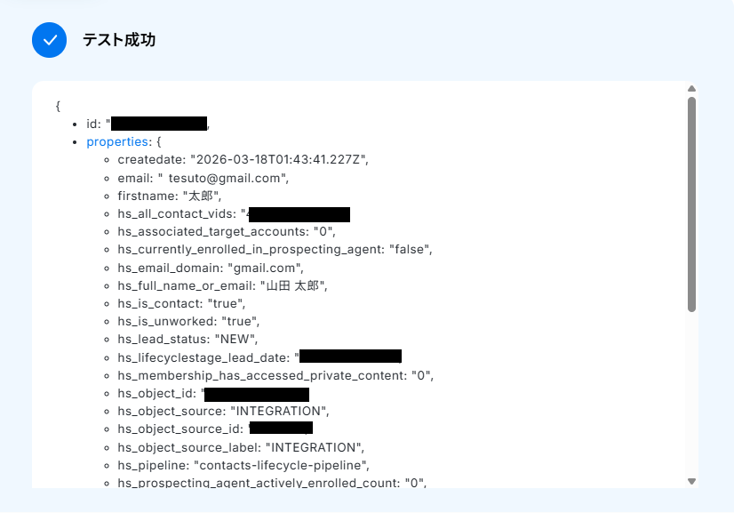 ステップ5:HubSpotにコンタクトを自動で作成する設定