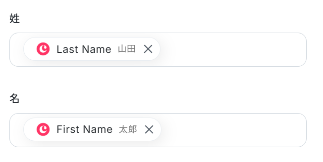 「姓」と「名」も同様に、CopperのPersonに登録した情報が引用できるように設定されているので、確認してください。