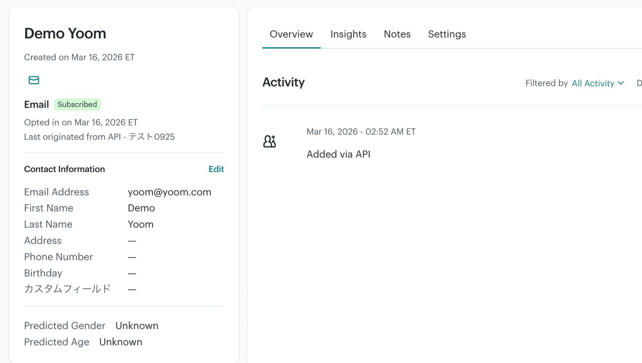 これで、Copperで人物が作成されると、自動的にMailchimpでコンタクトが追加されるようになります!