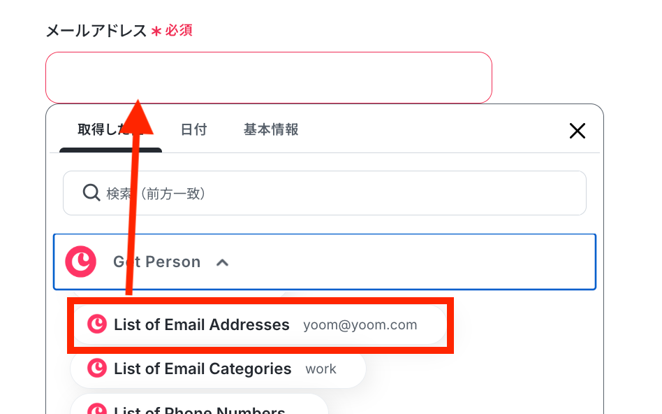 メールアドレスを取得した値の中から選択して、設定しましょう!
