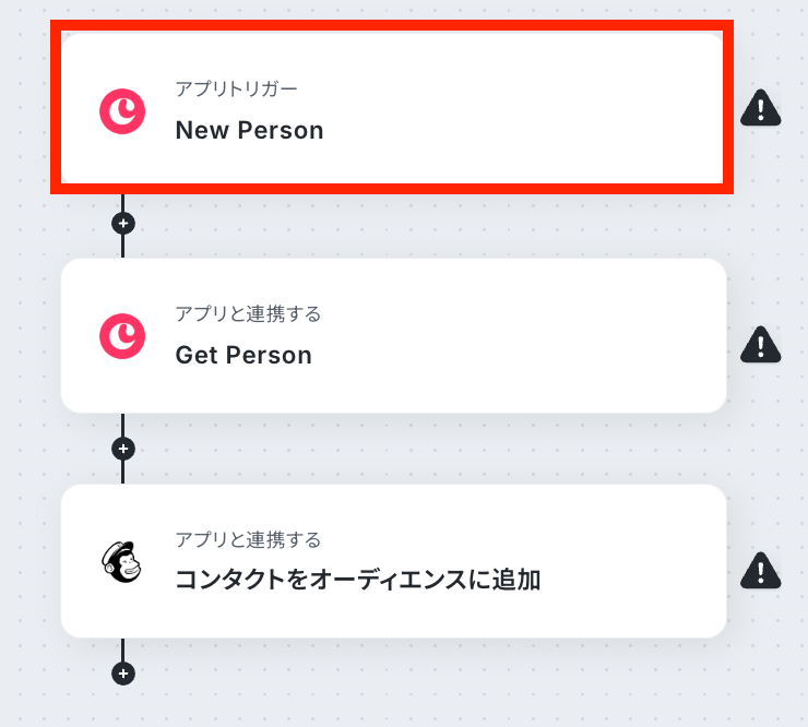 今回は「CopperでPersonが作成されたら、Mailchimpのコンタクトにオーディエンスに追加する」フローを作成していきます!
