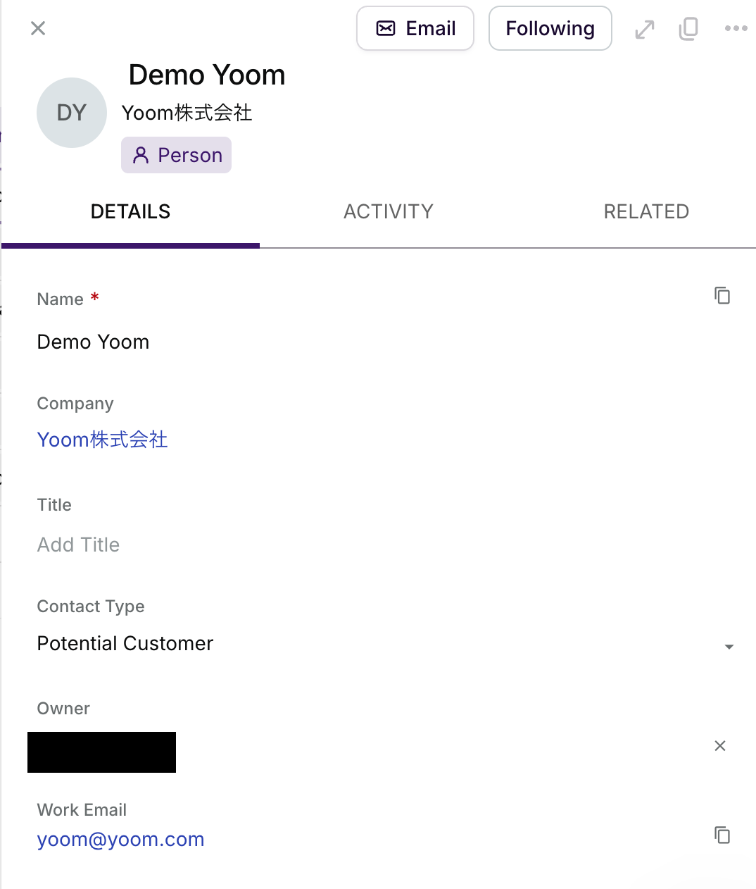 Yoomの画面に戻り、以下のような表示が出たらCopperとの連携は完了です。