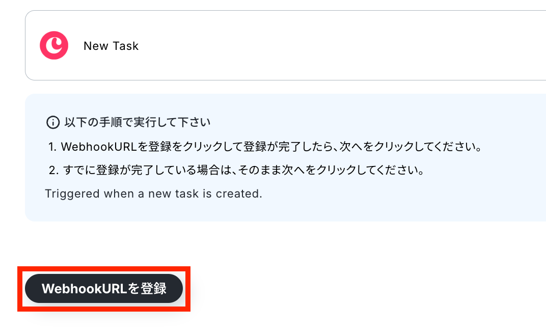 Webhookを登録します。「WebhookURLを登録」をクリックしましょう!