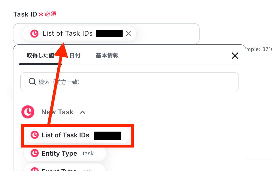 - Copperでタスク情報を取得するアクションでは、対象とするTask IDを固定値で指定したり、前のステップで取得した情報を変数として設定したりすることが可能です。