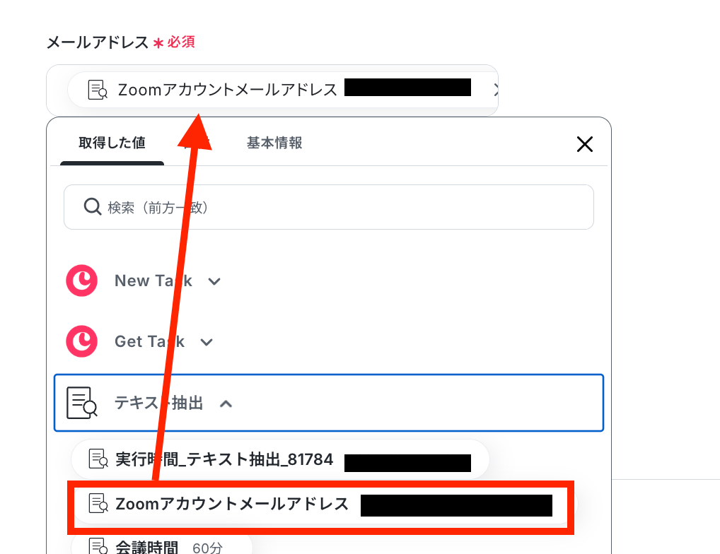取得した値の中から、抽出したい対象のテキストを選択しましょう。