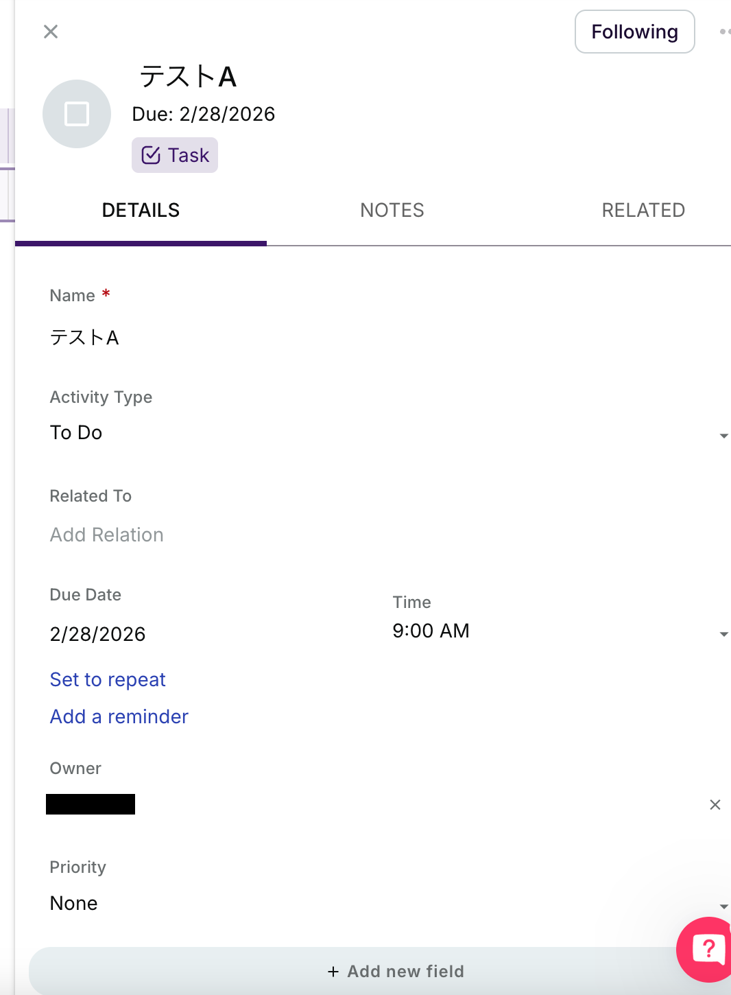 - AI機能のテキスト抽出では、Copperのタスク詳細から投稿のタイトルや本文として利用したい箇所など、任意の抽出項目を設定してください