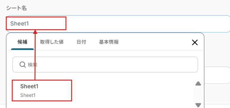 シート名も候補から選択します。
