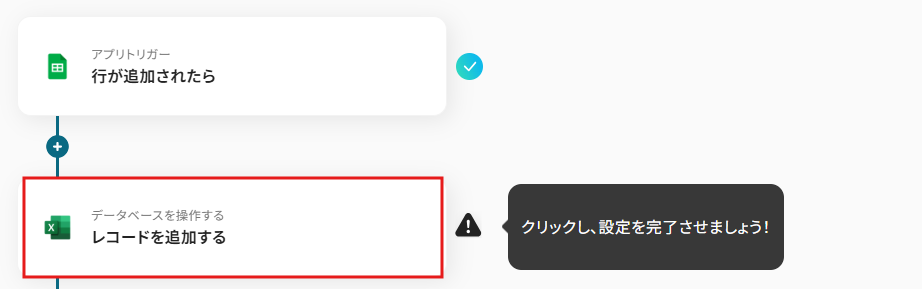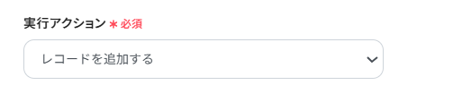 今回は、Google スプレッドシートに顧客データが追加されたら、Microsoft Excelにも自動追加するフローなので、レコードを追加するをプルダウンから選びましょう。 レコードを追加するを選ぶことで、Google スプレッドシートに顧客データが追加後、Microsoft Excelにも自動でレコードを追加してくれる設定です。