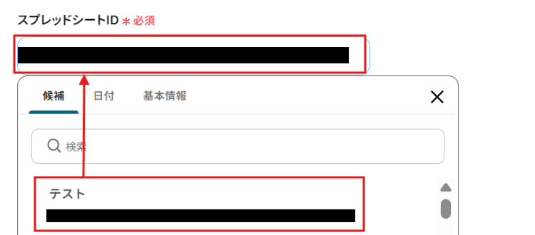 スプレッドシートIDとは、Google スプレッドシートのURLから取得できます。 対象のGoogle スプレッドシートIDを入力してください。
