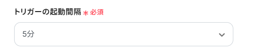 まずは、トリガーの起動間隔を設定します。 トリガーの起動タイミングは、5分、10分、15分、30分、60分から設定できますので、プルダウンから選んでください。