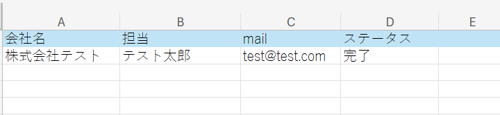 今回使用するGoogle スプレッドシートは以下です。 こちらのGoogle スプレッドシートに顧客データが追加されたら、Microsoft Excelにも自動追加されるようにフローボットを作成していきます。