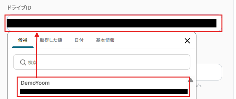 ドライブIDは候補から選択します。