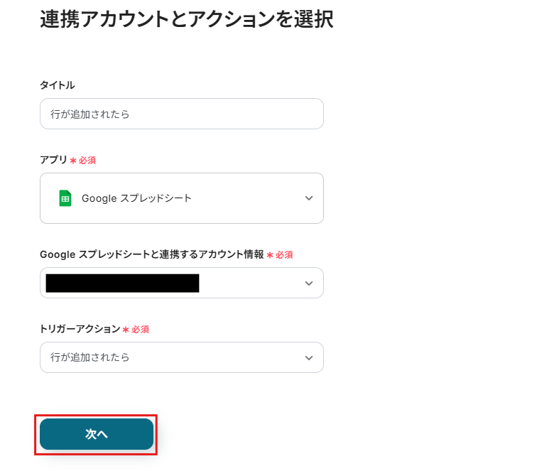 「行が追加されたら」をクリックしてください。