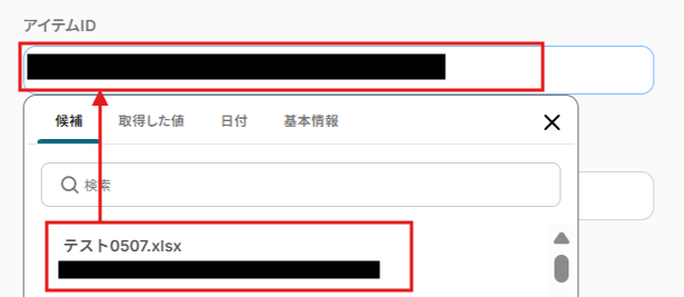 アイテムIDも候補から選択します。