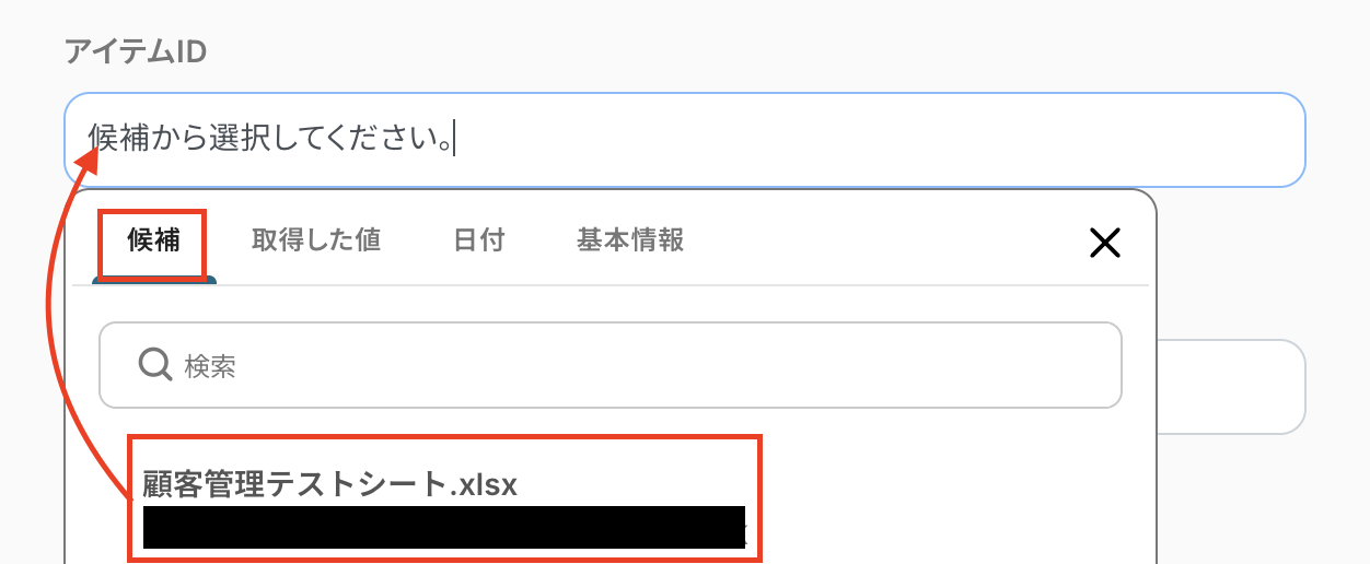アイテムIDは候補から選択してください。