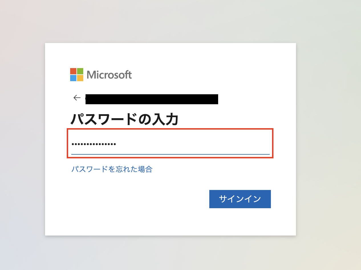 パスワードを入力し、サインインをクリックしてください。
