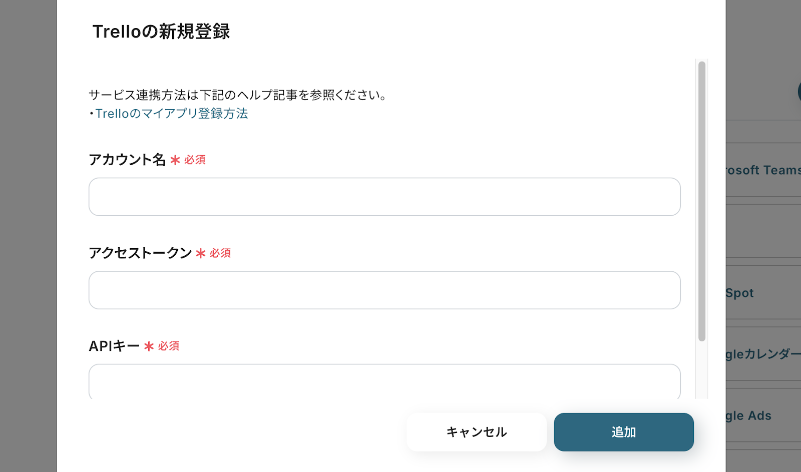 ・Trello、Google スプレッドシートのそれぞれとYoomを連携してください。
