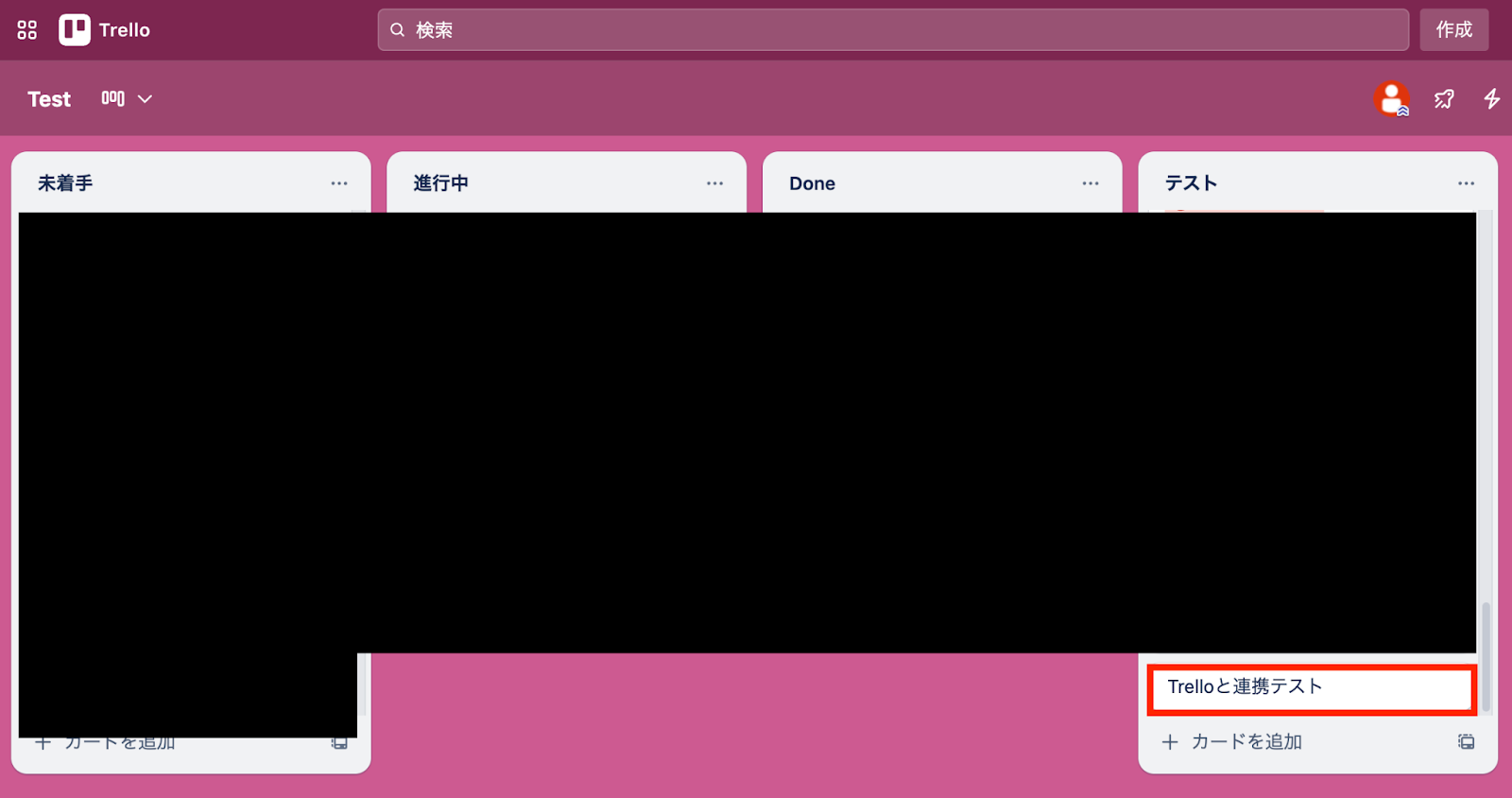 入力が完了したら「テスト」を押して、Trelloで実際にカードが作成されているか確認しましょう!