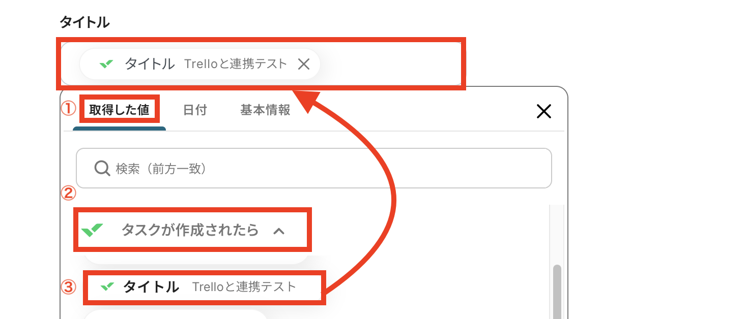 「タイトル」はステップ3で取得した値を活用して入力してください。