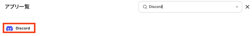 新規接続を押したあと、アプリのメニュー一覧が表示されるのでDiscordと検索し、対象アプリをクリックしてください。