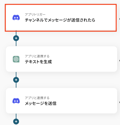- Discordのトリガーとアクション設定およびChatGPTのアクション設定