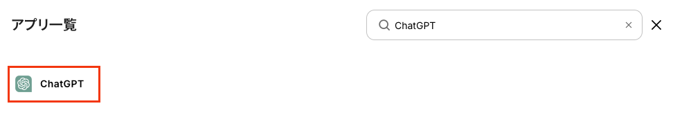 新規接続を押したあと、アプリのメニュー一覧が表示されるのでChatGPTと検索し対象アプリをクリックしてください。