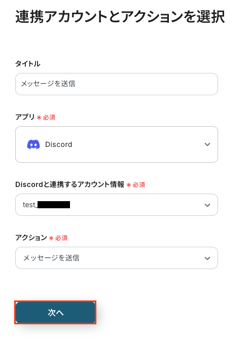 Discordと連携するアカウント情報に問題がなければ、「次へ」をクリックします。