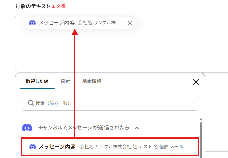 この連携は、メッセージ本文から必要な情報のみを抽出する処理を含むため、定型的な報告をトリガーとした自動化に最適です。