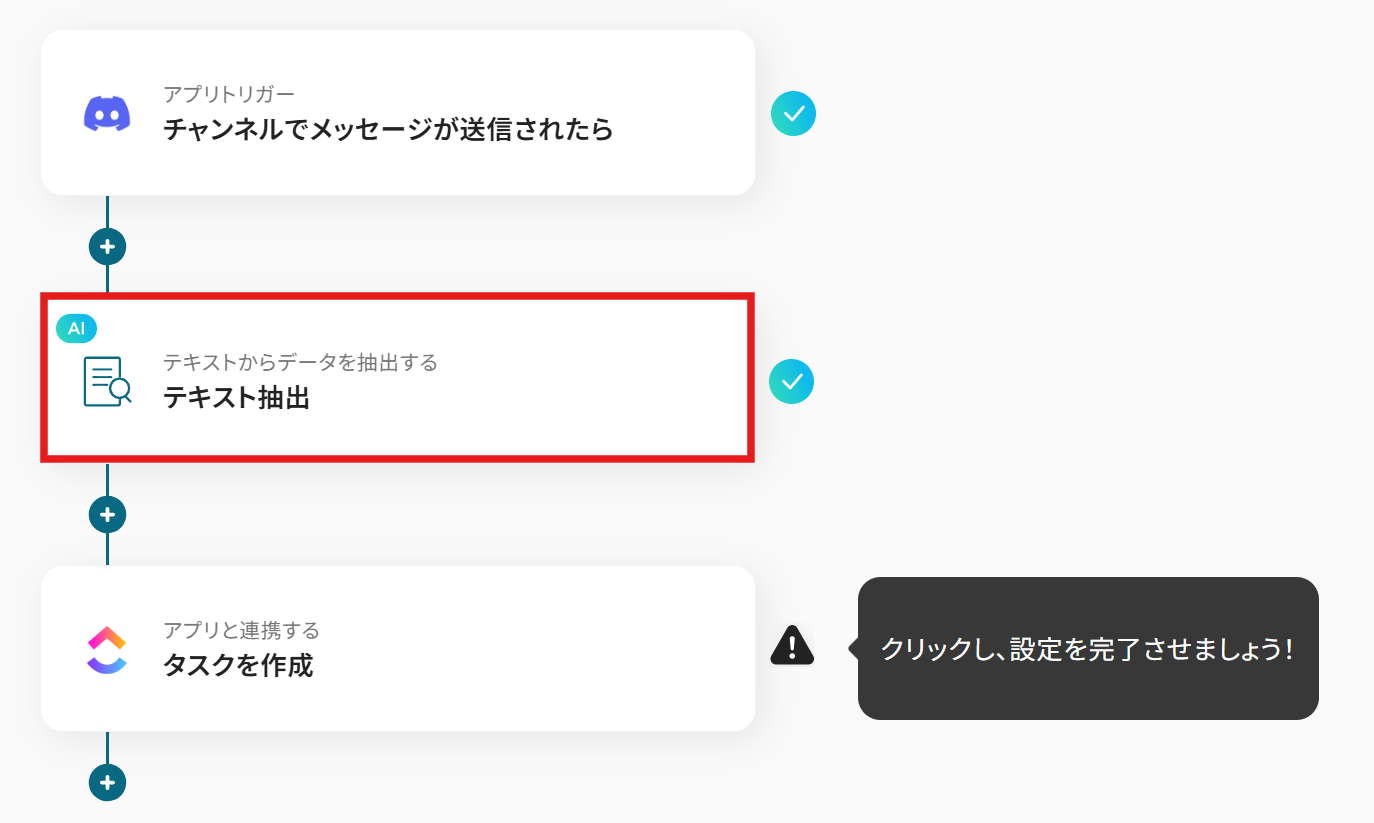このワークフローを活用すれば、Discordの特定チャンネルへのメッセージ投稿をきっかけに、その内容を自動で抽出しClickUpへタスクとして起票することが可能です。ClickUpとDiscordの連携を自動化し、コミュニケーションとタスク管理を円滑にします。