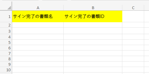 フローの作成を始める前に、あらかじめYoomと連携するMicrosoft Excelで、DocuSignの電子サイン情報を追加するMicrosoft Excelシートを作成しておきましょう!