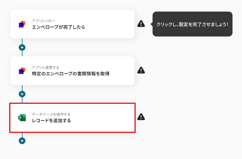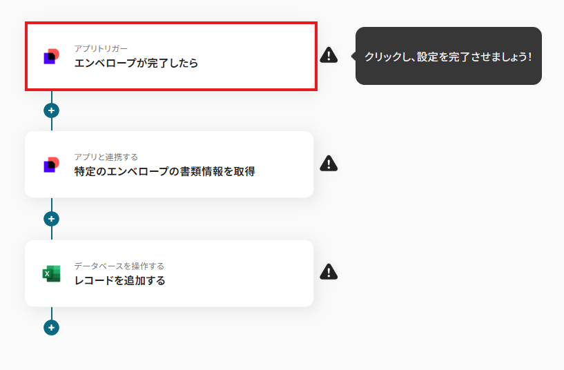 それではここから代表的な例として、DocuSignで電子サインが完了した際に、その情報をMicrosoft Excelの指定したシートに自動で追加するフローを解説していきます!