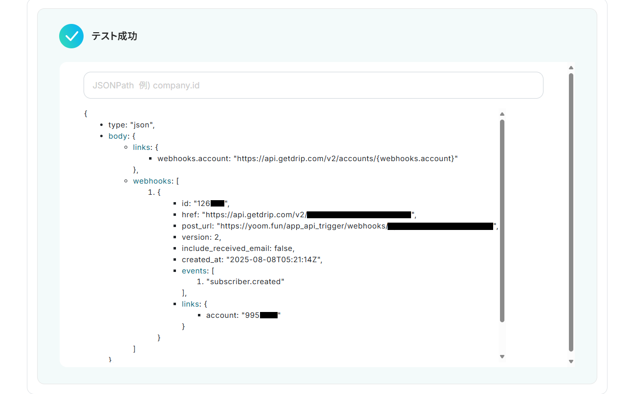 ステップ3:トリガーとなるDripのWebhook設定