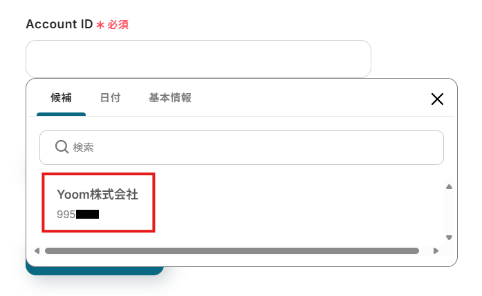 複数のアカウントと連携している場合には、このフローで用いるアカウントをプルダウンから選択してください。