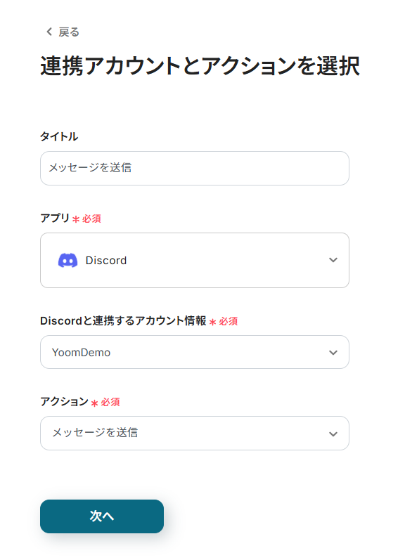 - 同じくDiscordのアクションにて、チームメンバーに共有したいメッセージ内容を任意で設定してください。