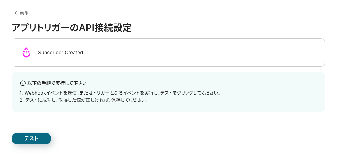 - 先ずは、購読者の作成を検知するWebhookを登録します。