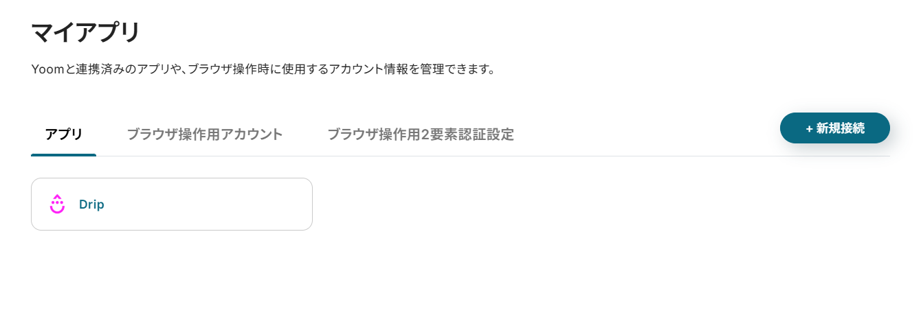 先ずは、Yoomと連携させたいDripアカウントとDiscordアカウントを「マイアプリ」に登録しましょう。