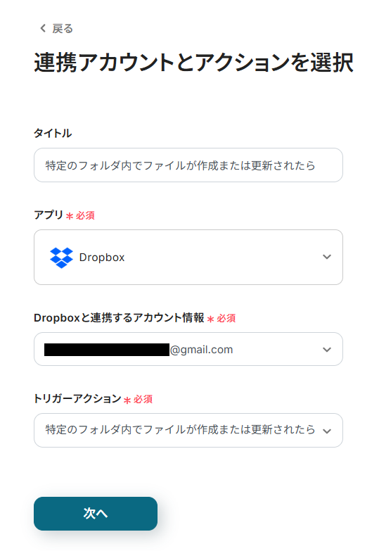 ステップ3:Dropboxのトリガー設定 先ずは、フローの起点となるトリガーアクションを設定していきます。