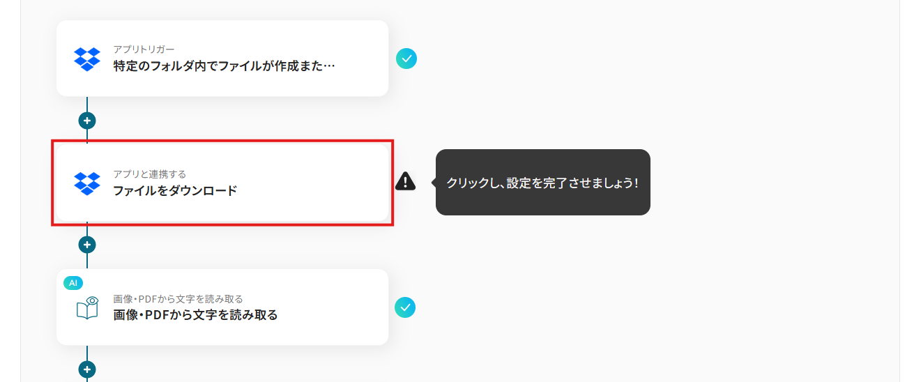 ステップ5:OCRによるテキスト抽出 OCRを使って、ダウンロードしたファイルからテキストを抽出しましょう。 参考:「OCRで文字を抽出」の設定方法