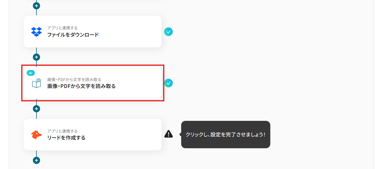 フローの作成方法 この記事では、先程ご紹介した「Dropboxで特定のフォルダ内でファイルが作成されたら、OCRしてHunterにリードを作成する 」フローを作成します。 作成の流れは大きく分けて以下の通りです。