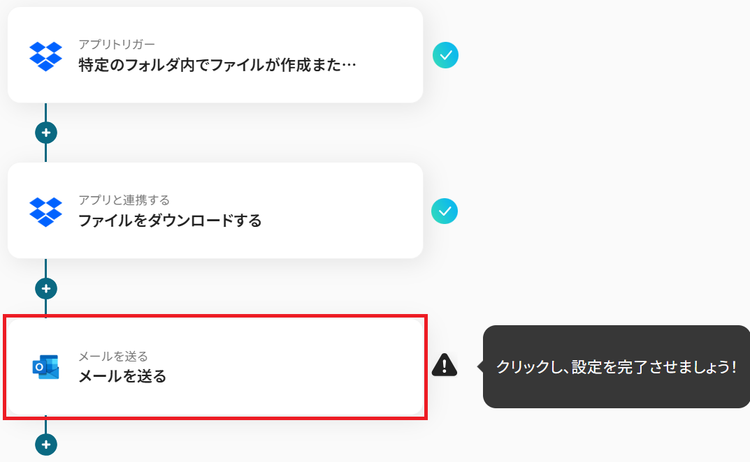 関係者へのファイル共有の連絡を手動で行う手間がなくなり、スピーディーな情報共有が実現します。確認漏れや対応の遅れを防ぐのにも役立ちますね。この自動化は、Dropboxでのアクションをトリガーに直接Outlookへ情報連携するシンプルな構成です。