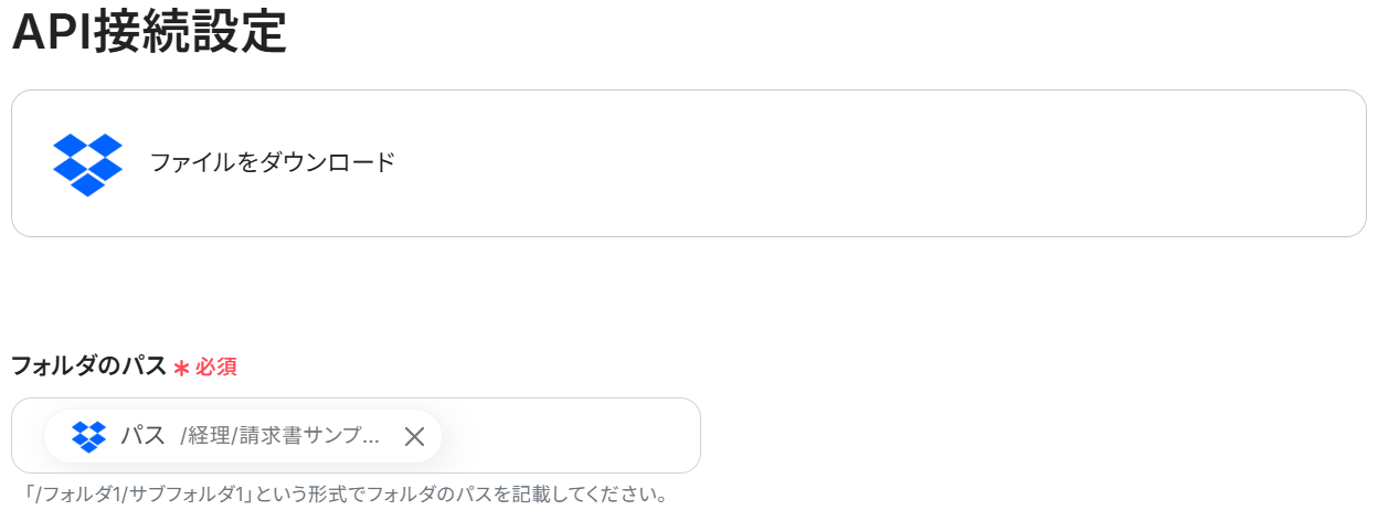 次に、先ほどファイルを格納したフォルダのパスを入力しましょう。今回でいうと「/経理」です。
